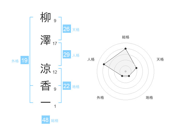 柳澤 涼香一さんを姓名の画数から五運を鑑定