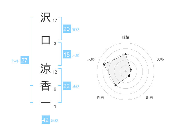 沢口 涼香一さんを姓名の画数から五運を鑑定
