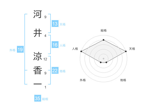河井 涼香一さんを姓名の画数から五運を鑑定