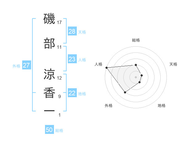 磯部 涼香一さんを姓名の画数から五運を鑑定
