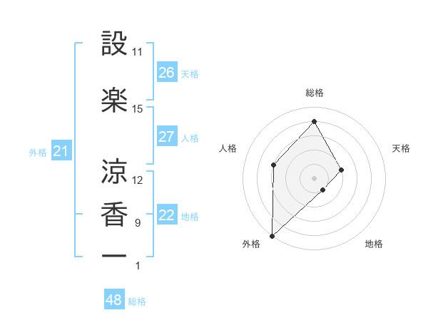設楽 涼香一さんを姓名の画数から五運を鑑定