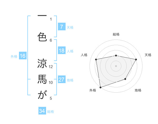 一色 涼馬がさんを姓名の画数から五運を鑑定