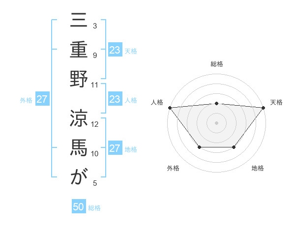 三重野 涼馬がさんを姓名の画数から五運を鑑定