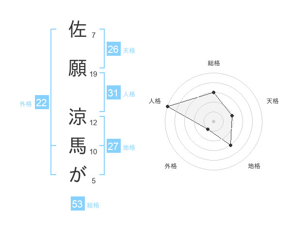 佐願 涼馬がさんの総格は53画の3点