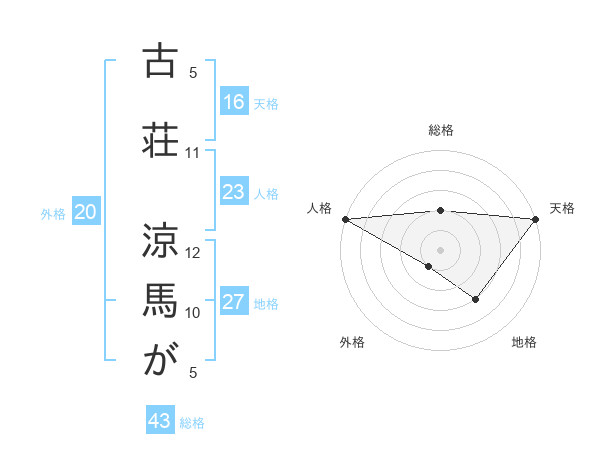 古荘 涼馬がさんの地格は27画の3点!