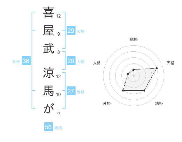 喜屋武 涼馬がさんを姓名の画数から五運を鑑定