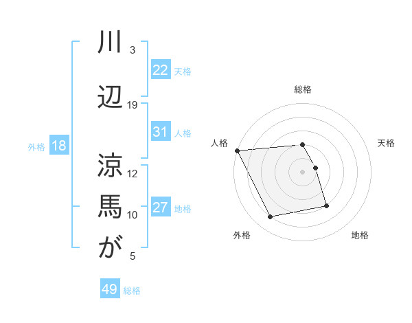 川辺 涼馬がさんを姓名の画数から五運を鑑定
