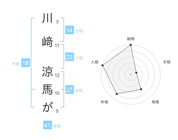 川﨑 涼馬がさんを姓名の画数から五運を鑑定