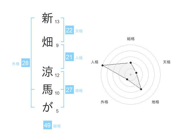 新畑 涼馬がさんを姓名の画数から五運を鑑定