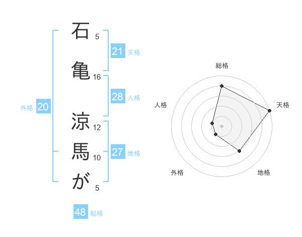 石亀 涼馬がさんの天格は21画の5点!