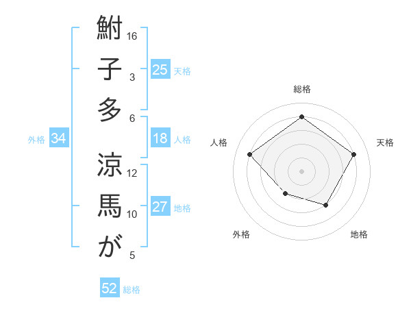 鮒子多 涼馬がさんの総格は52画の4点!