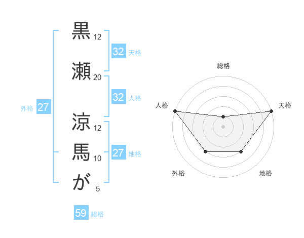 黒瀬 涼馬がさんを姓名の画数から五運を鑑定