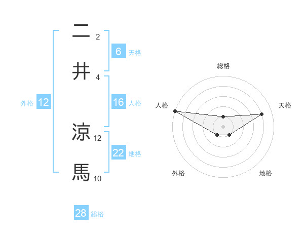 二井 涼馬さんの総格は28画の1点!