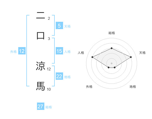 二口 涼馬さんを姓名の画数から五運を鑑定