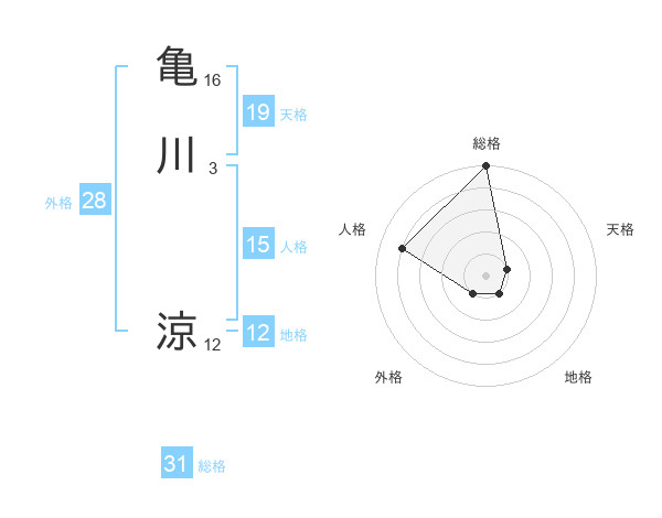 亀川 涼さんの総格は31画の5点!