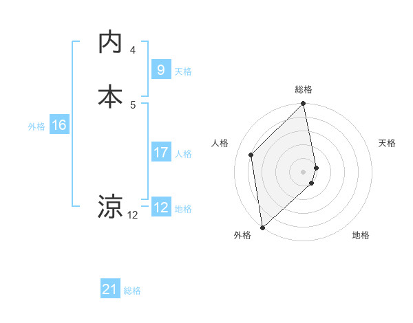 内本 涼さんの総格は21画の5点!