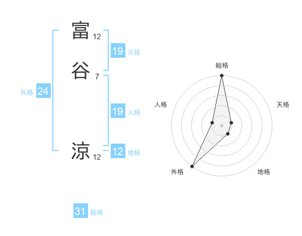 富谷 涼さんの地格は12画の1点!