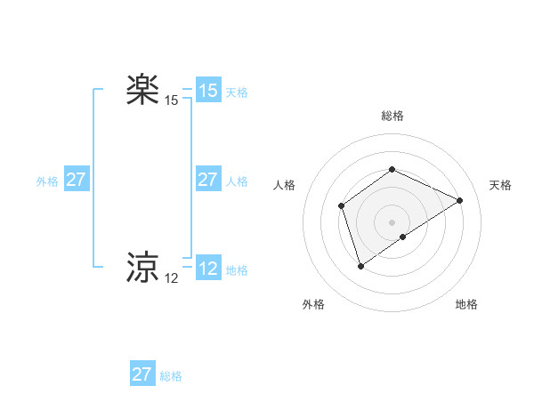 楽 涼さんの外格は27画の3点!