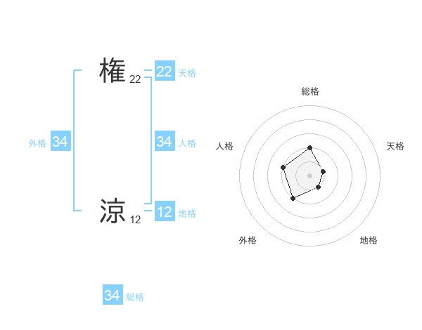 権 涼さんの外格は34画の2点!