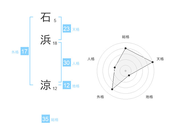 石浜 涼さんの総格は35画の4点!