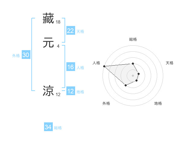 藏元 涼さんの総格は34画の2点!