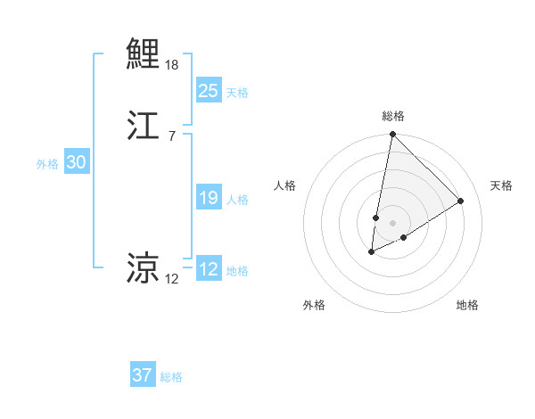 鯉江 涼さんの総格は37画の5点!