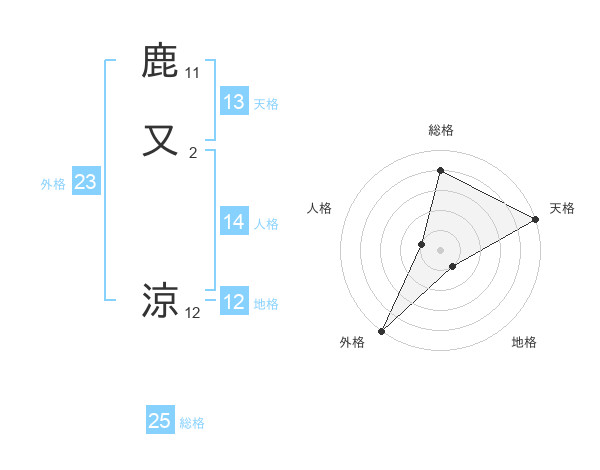 鹿又 涼さんの総格は25画の4点!