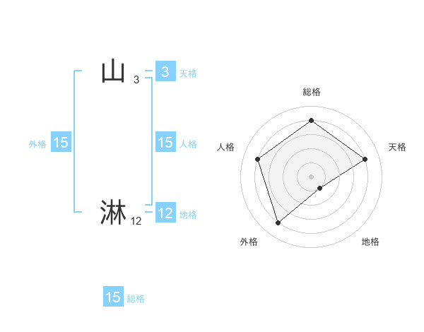 山 淋さんの外格は15画の4点!