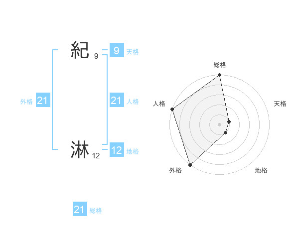 紀 淋さんの外格は21画の5点!