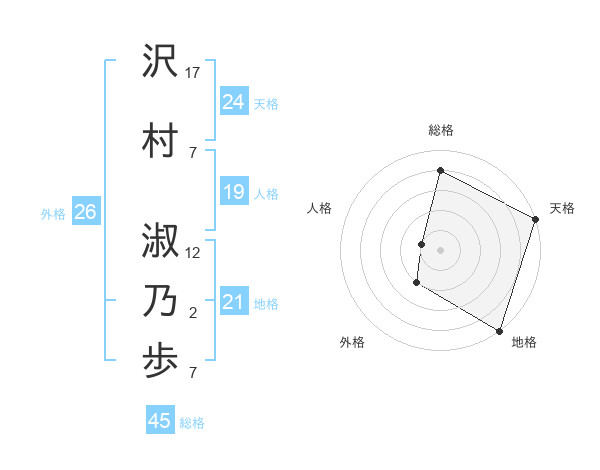 沢村 淑乃歩さんを姓名の画数から五運を鑑定