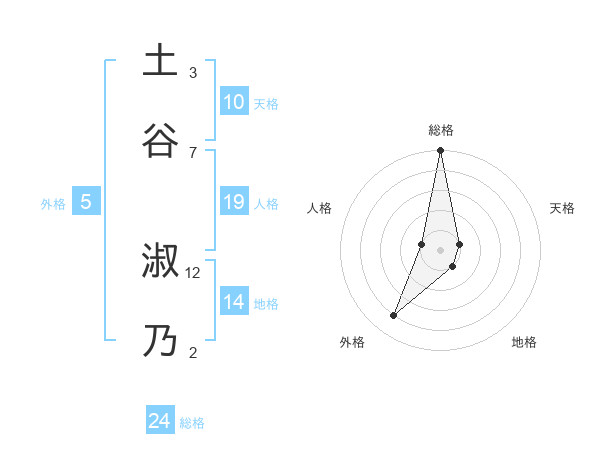 土谷 淑乃さんを姓名の画数から五運を鑑定