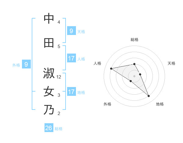 中田 淑女乃さんを姓名の画数から五運を鑑定
