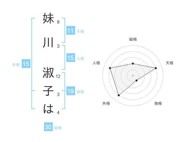 妹川 淑子はさんを姓名の画数から五運を鑑定