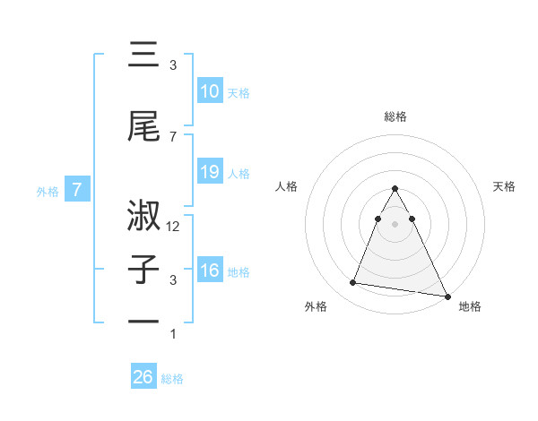 三尾 淑子一さんを姓名の画数から五運を鑑定