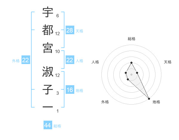 宇都宮 淑子一さんの総格は44画の2点!