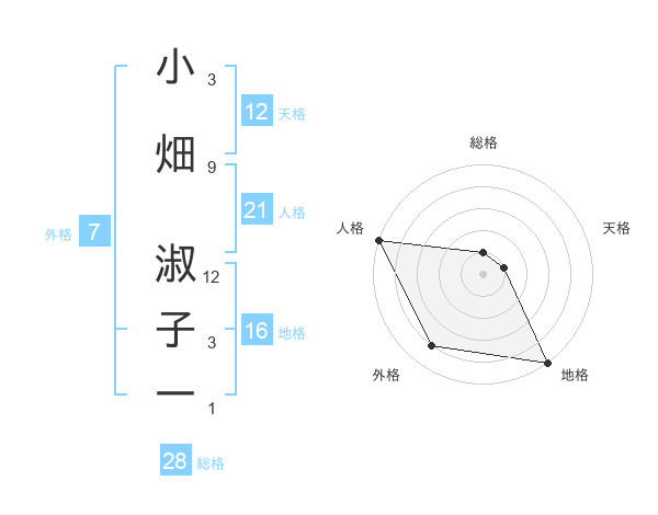 小畑 淑子一さんの総格は28画の1点!