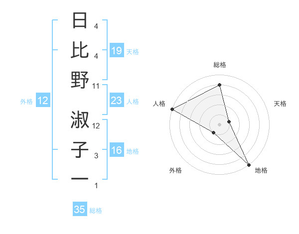 日比野 淑子一さんを姓名の画数から五運を鑑定
