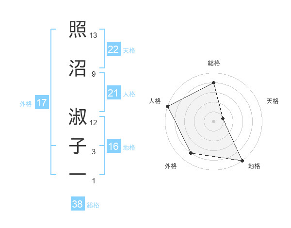 照沼 淑子一さんの総格は38画の4点!