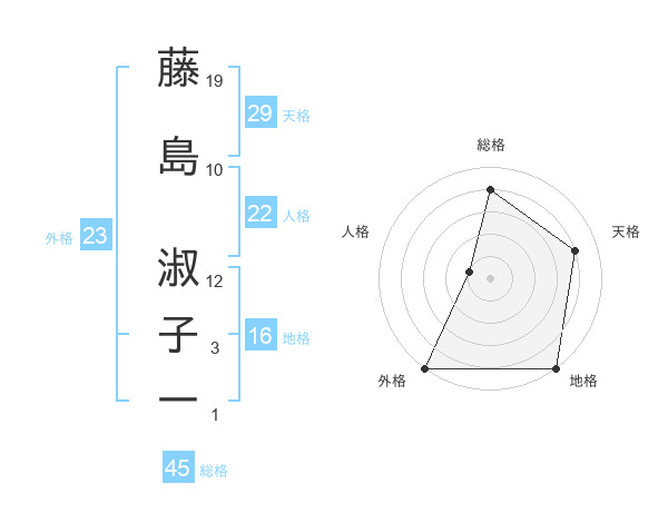 藤島 淑子一さんを姓名の画数から五運を鑑定