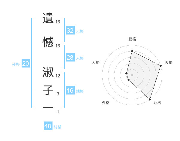 遺憾 淑子一さんを姓名の画数から五運を鑑定