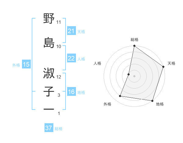 野島 淑子一さんを姓名の画数から五運を鑑定