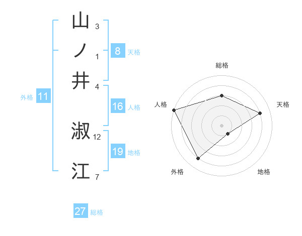 山ノ井 淑江さんを姓名の画数から五運を鑑定