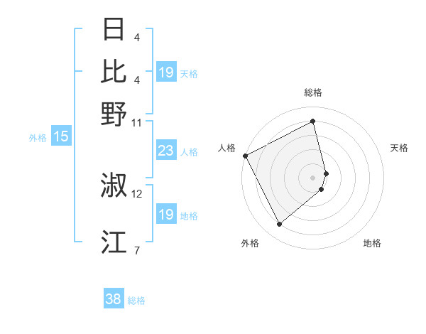 日比野 淑江さんの総格は38画の4点!