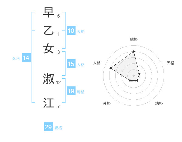 早乙女 淑江さんを姓名の画数から五運を鑑定
