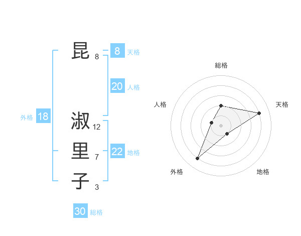 昆 淑里子さんを姓名の画数から五運を鑑定