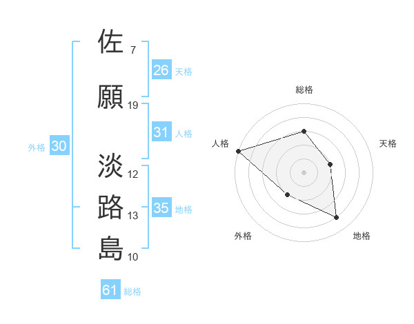 佐願 淡路島さんを姓名の画数から五運を鑑定