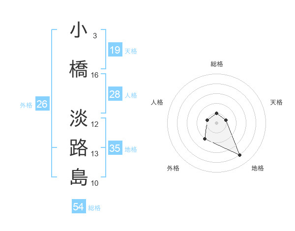 小橋 淡路島さんを姓名の画数から五運を鑑定