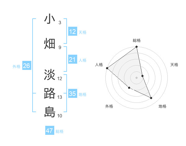 小畑 淡路島さんの総格は47画の5点!