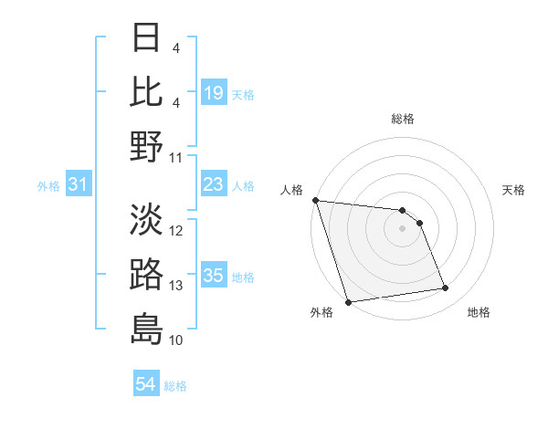 日比野 淡路島さんの総格は54画の1点!