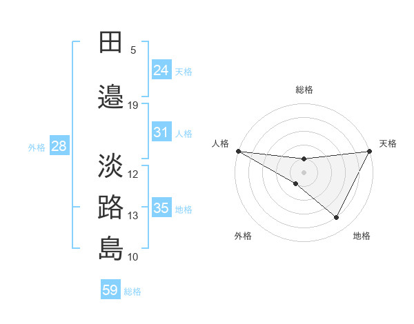 田邉 淡路島さんを姓名の画数から五運を鑑定